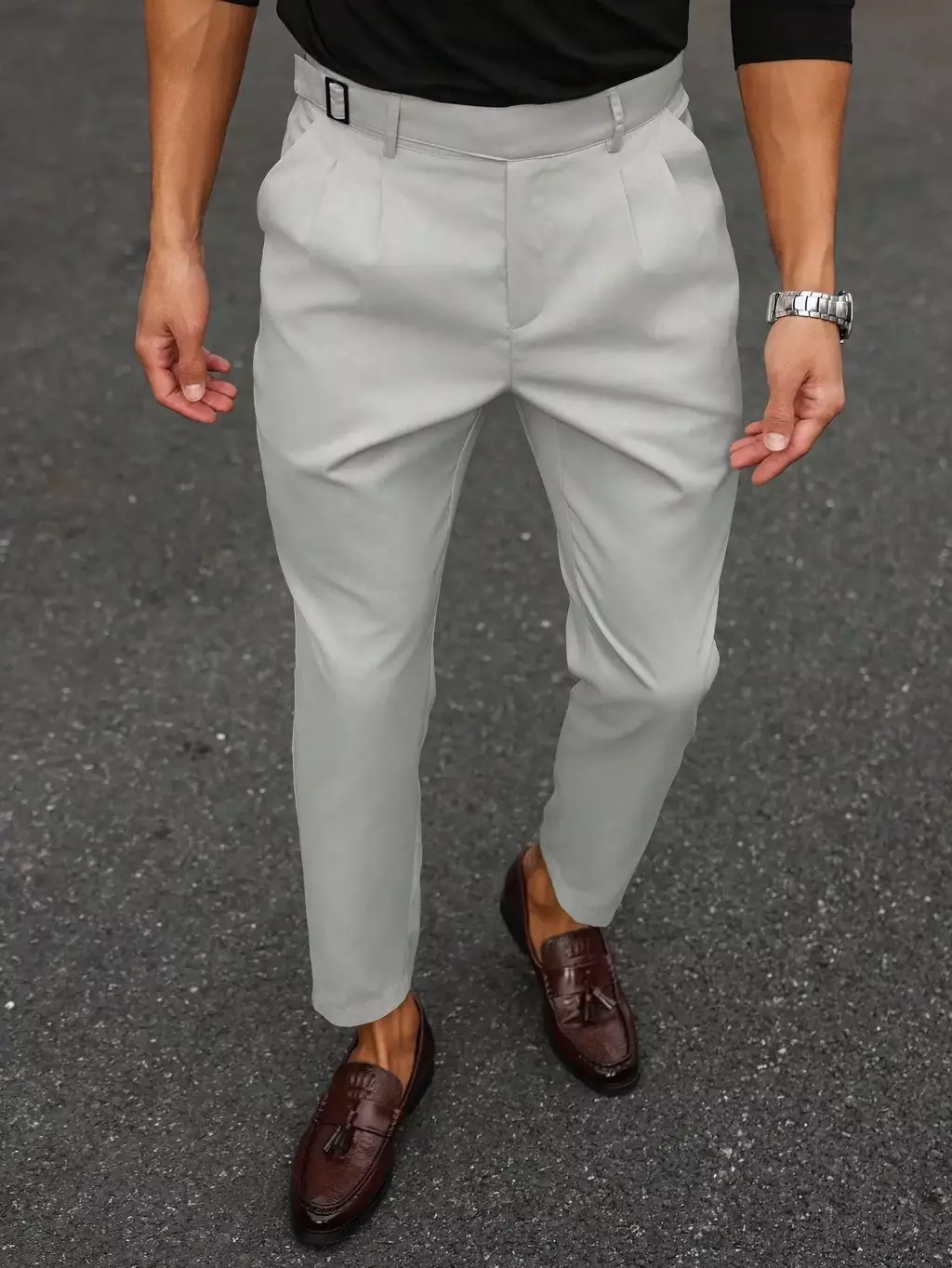 Facilidade de combinar: por seu tom neutro, pode ser usado com sapatos sociais, mocassins ou até tênis sofisticados.