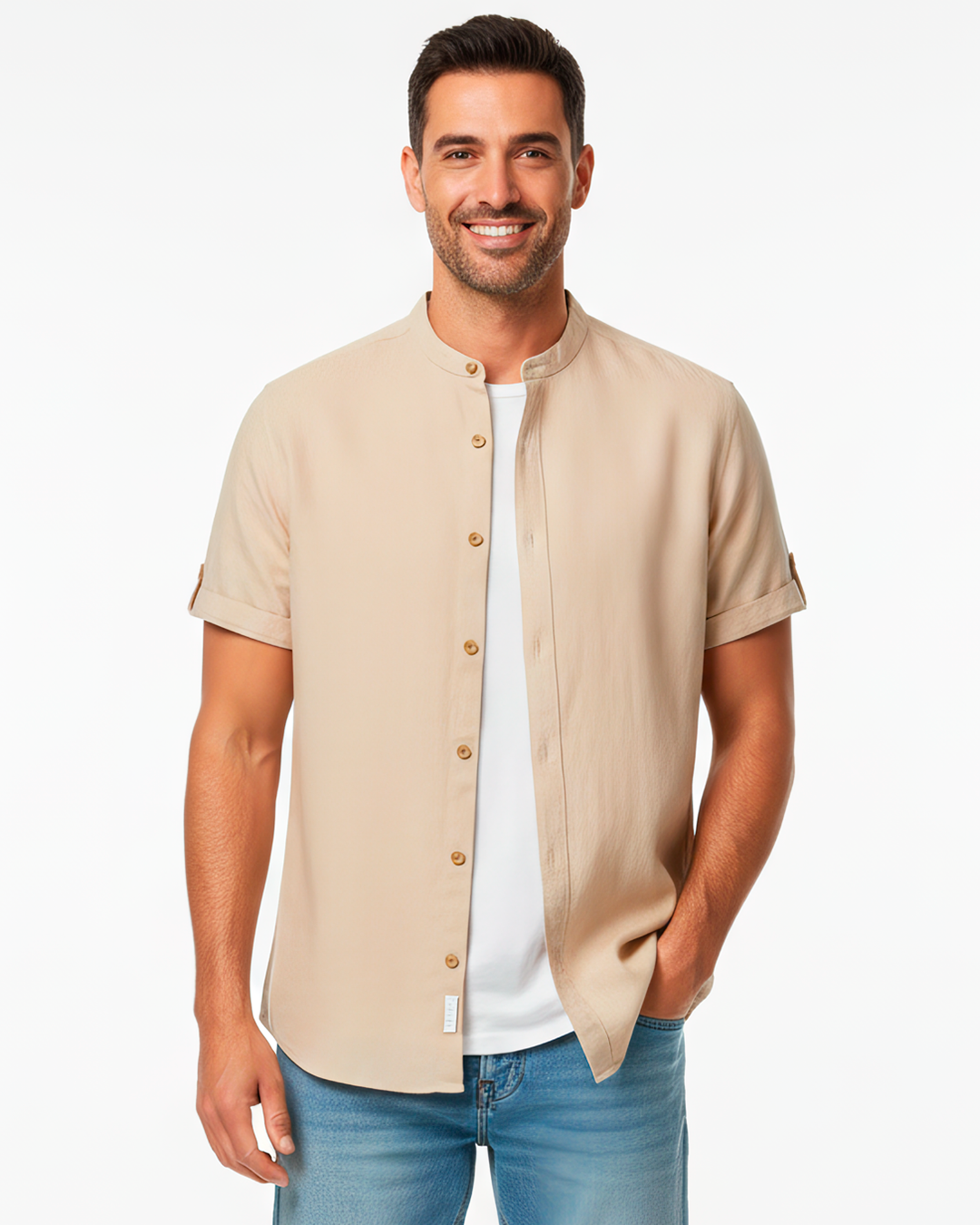 Camisa masculina da linha Moda Gents , feita para quem valoriza um visual moderno e clean. Este modelo possui tecido sólido em diversas cores (off white, preto, vinho, verde militar, caqui, azul marinho), com corte de caimento regular, oferecendo conforto aliado à elegância. A gola padre (também chamada gola mandarina) confere um estilo minimalista e sofisticado, enquanto a abertura frontal com botões adiciona praticidade e personalidade à peça.