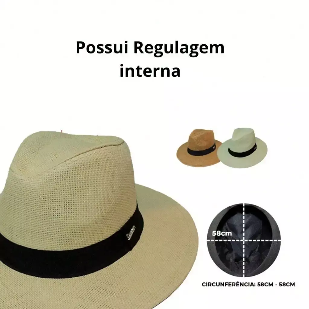 Eleve seu visual com elegância e proteção solar com este Chapéu Panamá de Palha Shantung. Confeccionado com materiais leves e resistentes, o chapéu combina tradição com modernidade — ideal para sair para a praia, passeios ao ar livre ou para compor looks sofisticados de verão. A aba larga oferece ótima cobertura contra o sol, enquanto a copa estruturada garante um caimento confortável e elegante para todos os gêneros (unissex). A palha shantung confere um toque natural e refrescante, perfeito para temperaturas mais altas. Um acessório versátil que une estilo casual e funcionalidade, acrescentando charme atemporal ao seu guarda-roupa.